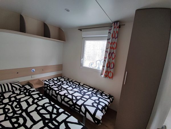 1 dormitorio doble, cada uno con 2 camas individuales, mesita de noche y armario. Dispone de rampas que pueden hacer de cuna (incluidas)